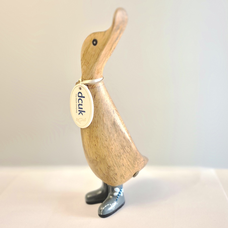 A truly beautiful collection of hand-carved and hand painted bamboo root Ducks each wearing colourful wellies featuring adorable bugs like ladybirds, bees, dragonflies, and butterflies.