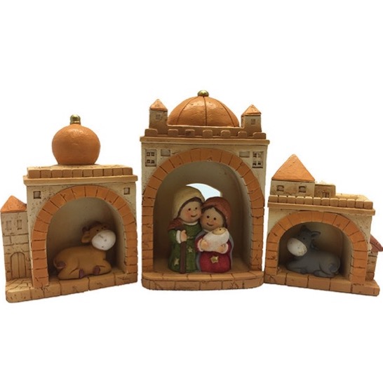 This gorgeous Children’s Nativity Set 3 piece is small but sweet and is great for the child’s beside table. This adorable Nativity Scene has cute children like figures of the Holy Family.  Great gift idea or for your child.